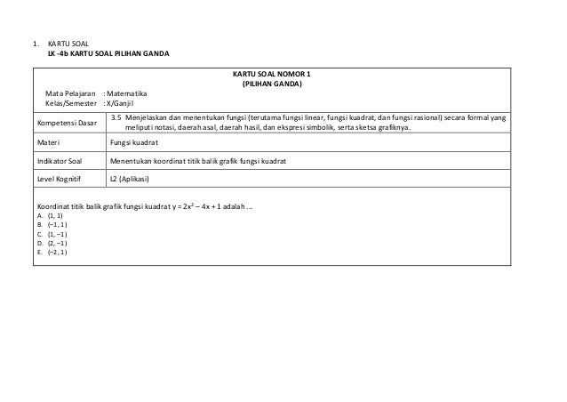 Contoh file berikut ini adalah kumpulan dari berbagi sumber tentang soal bahasa inggris pilihan ganda tentang caption yang bisa bapakibu gunakan dan. Maka dipertemuan kali ini soal fungsi linear ini adalah salah satu hal yang wajib kamu tahu dimana admin blog soal kunci jawaban menyampaikan soal fungsi linear kepada teman teman. Tentukan persamaan garis yang melalui titik: 20 contoh soal materi interaksi makhluk hidup. Untuk menentukan graik fungsi kuadrat, secara umum ada 3 tahapan 1. Soal pilihan ganda bahasa indonesia teks lho dan jawabannya. Sistem persmn liner du vriel (spldv). Mengatur semua operasi dari seluruh. Determiner pengertian fungsi jenis dan contoh kalimat dalam. 20 soal simple future tense yang tidak pernah kamu bayangkan. Pada microsoft visual basic yang dimaksud dengan metoda dibawah ini adalah. Harefa nhovyta harefanhovyta on pinterest. Contoh soal pilihan ganda passive voice dan jawaba.