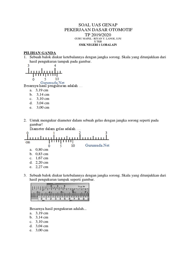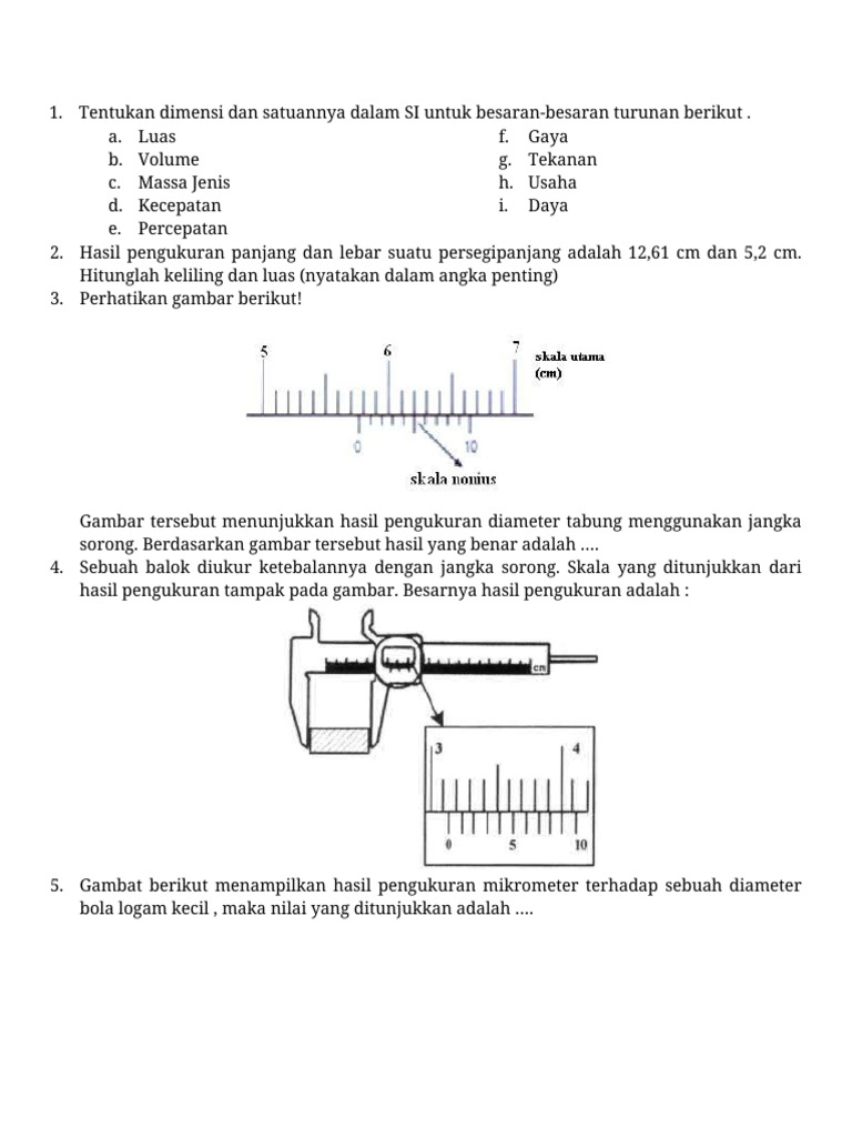 Soal Soal Pengukuran Besaran Dan Satuan Plus Kunci Jawaban Pdf Document from reader017.fdokumen.com Sebuah balok diukur ketebalannya dengan jangka sorong skala yang ditunjukkan dari hasil pengukuran tampak pada gambar besarnya hasil pengukuran adalah. We did not find results for: Check spelling or type a new query. Maybe you would like to learn more about one of these?