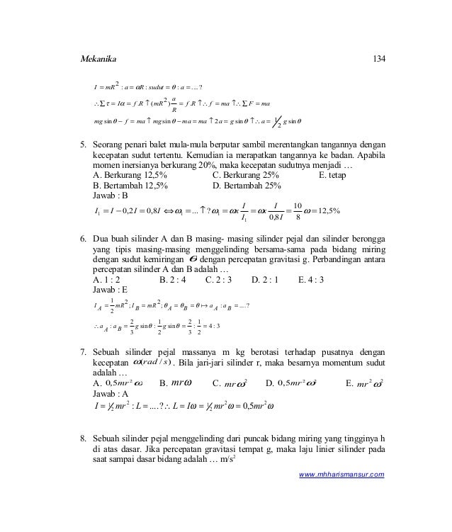 Contoh soal dan pembahasan dinamika rotasi materi fisika kelas.